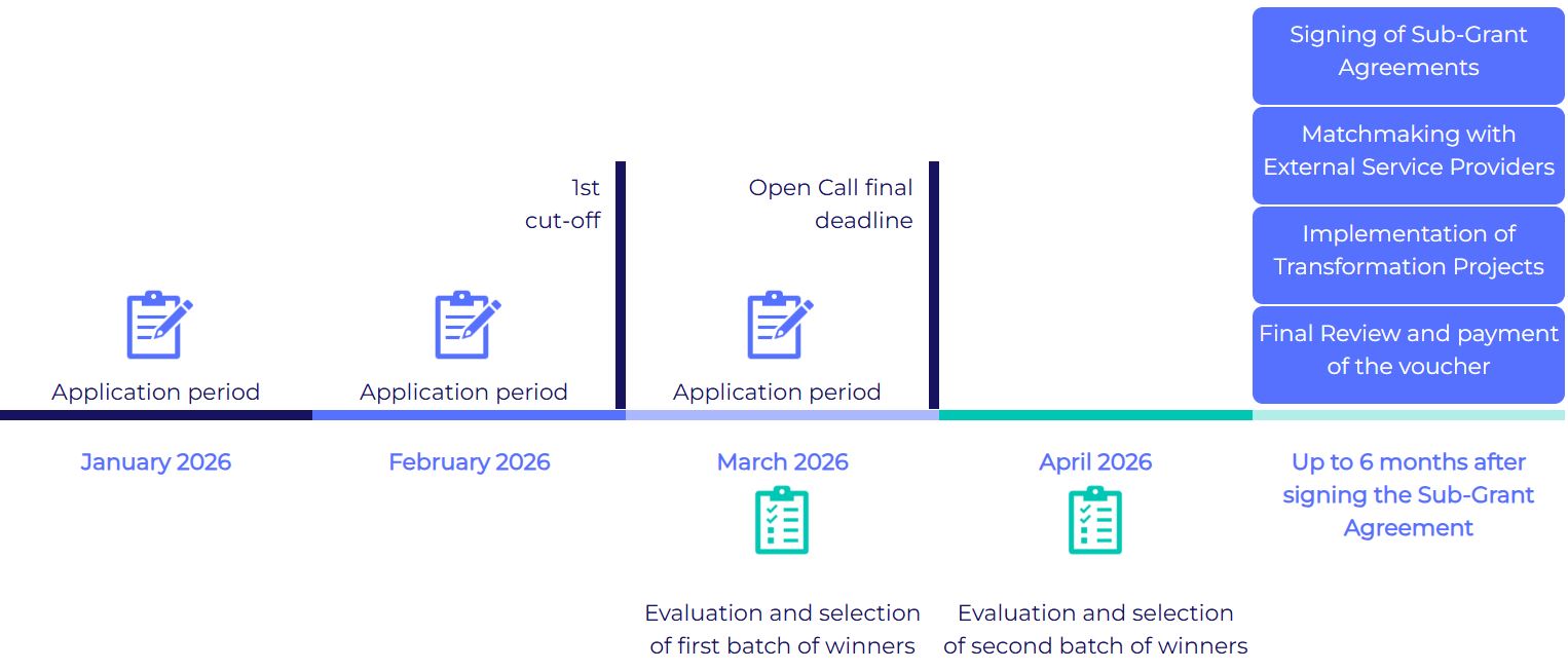 Cut-off date: 28 February 2026 (17:00 CET). Applications submitted by this date will be evaluated in the first round. Successful applicants will be onboarded in March 2026.